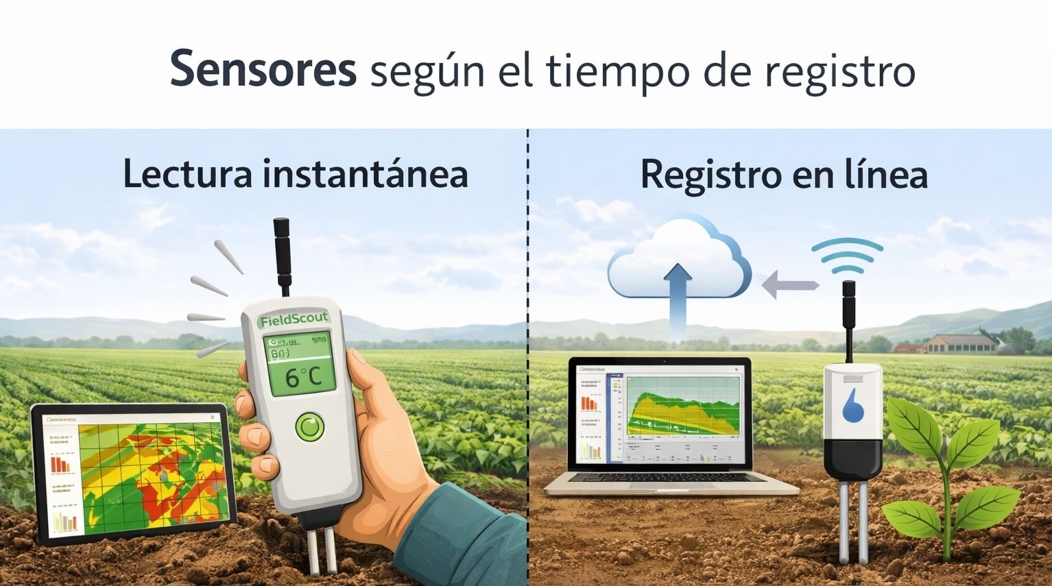 Aquí entran los sensores de humedad de suelo, estaciones meteorológicas o sensores portátiles.